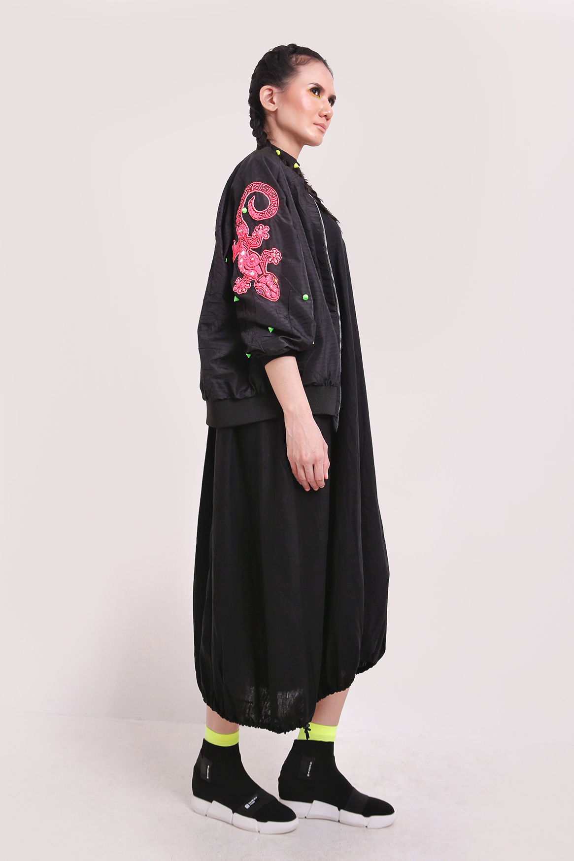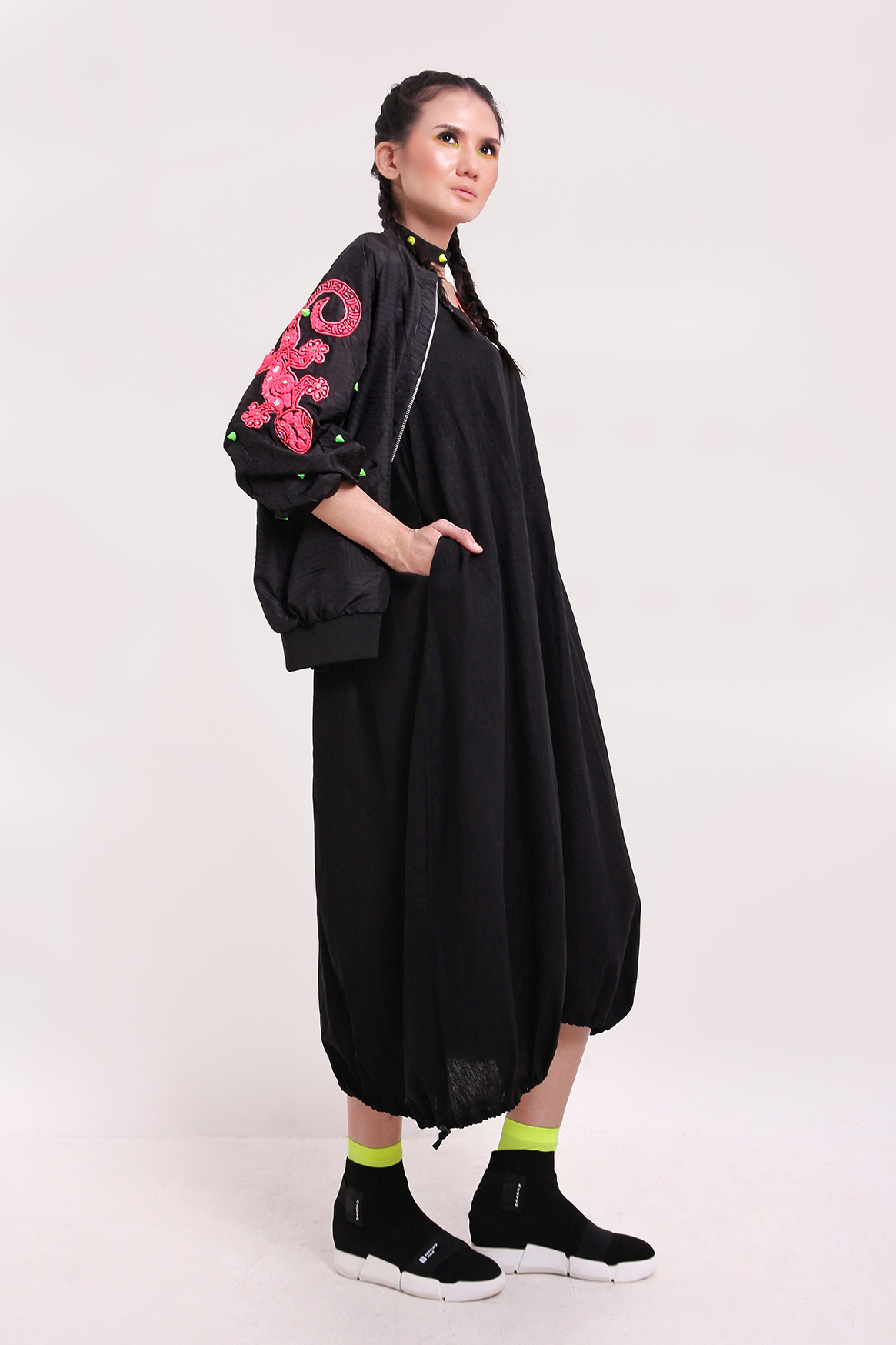 Black collection didesain khusus untuk para wanita yang ingin selalu tampil stylish tanpa mengorbankan kenyamanan. Dari sisi kenyamanan, koleksi ini didesain menggunakan bahan-bahan yang ringan dan lentur untuk memberikan keleluasaan bergerak yang lebih bagi para penggunanya. Sedangkan sisi stylish ditampilkan melalui pemilihan warna hitam dengan variasi warna-warna neon. Selain itu warna hitam juga dipilih untuk memberikan alternatif warna netral ditengah situasi tekanan politik yang diperkirakan akan semakin meningkat dalam satu tahun kedepan, seiring dengan banyaknya jumlah pemilihan kepala daerah (pilkada) yang akan diadakan sepanjang tahun ini. Warna hitam yang ditampilkan dalam koleksi “RebelliouZ part 2 – Black collection” dipilih untuk para wanita yang menginginkan privacy terhadap hak politiknya dan tidak ingin terasosiasi dengan warna dan pola yang identik dengan gerakan atau partai politik tertentu.
